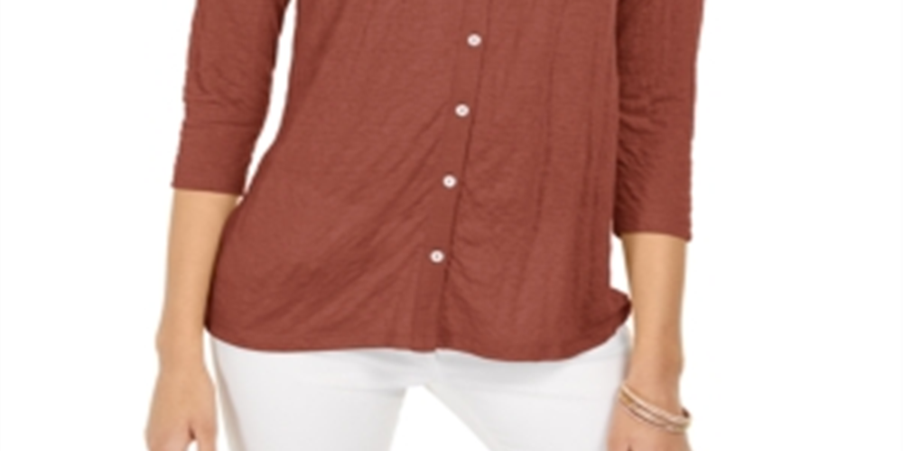 Style & Co Women's Eyelet Button Front Top Brown Size X-Large