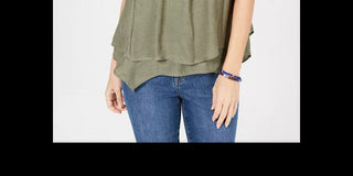 Style & Co Women's Lace Trim Swing Top Beige Size Small