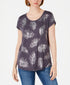 Style & Co Women's Leaf-Print Scoop-Neck Top Gray Size Small