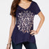 Style & Co Women's Metallic-Print Handkerchief Hem Top Navy Blue Size L