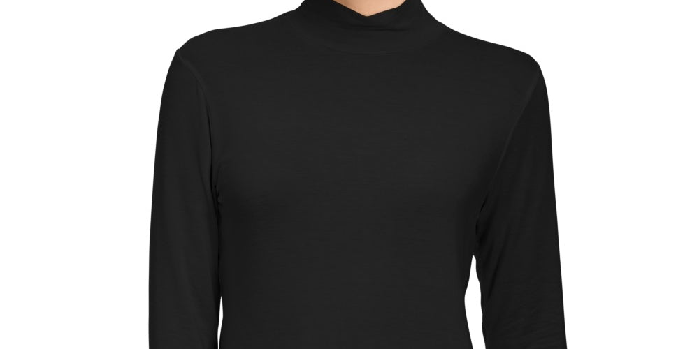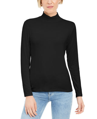 Style & Co Women's Mock Neck Top Black Size Petite Large