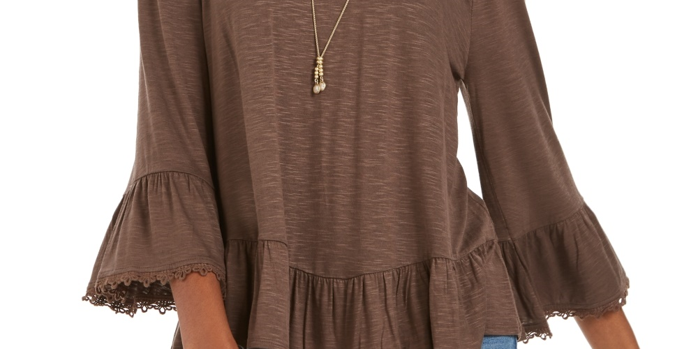 Ask a question about Style & Co Women's Off The Shoulder Bell Sleeve Top Brown Size Small