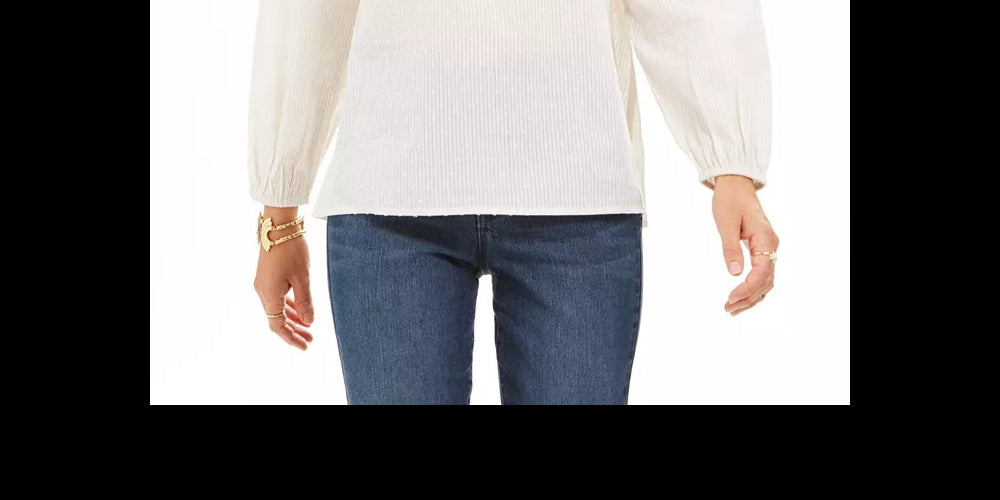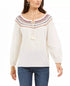 Style & Co Women's Petite Embroidered Smocked-Neck Cotton Top White Size PP