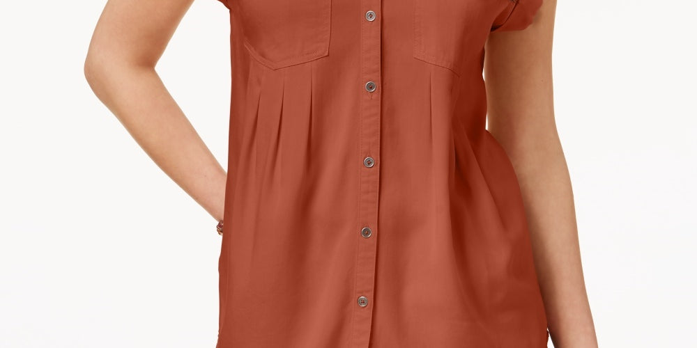 Style & Co Women's Pleated Cuffed Sleeve Top Orange Size Large