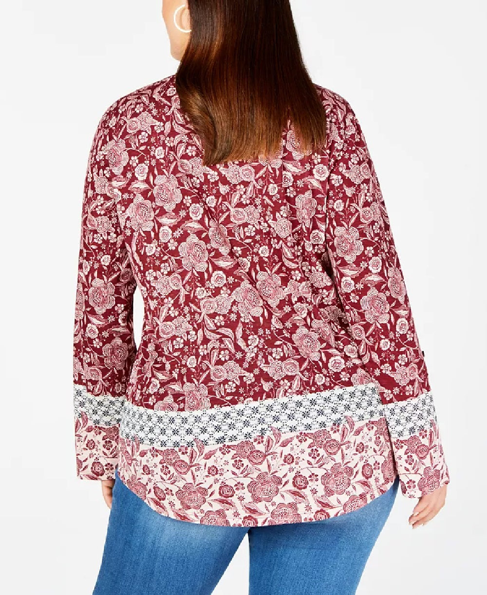 Approx. model height is 5'10" and she is wearing a size 1X | Hits at hip; relaxed fit; approx. length: 29-1/2" | V-neck | 3/4-sleeves | Cotton/modal | Machine washable | Imported