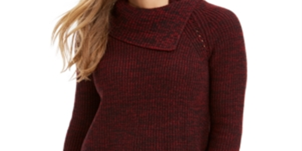 Ask a question about Style & Co Women's Pointelle Envelope Neck Sweater Black Red Size Petite M