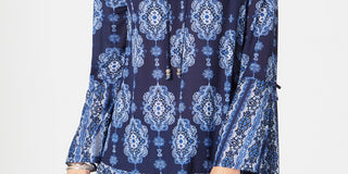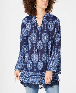 Style & Co Women's Printed Bell Sleeve Tunic Blue Size PP
