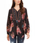 Style & Co Women's Printed Handkerchief-Hem Peasant Top Festive Black Size Large