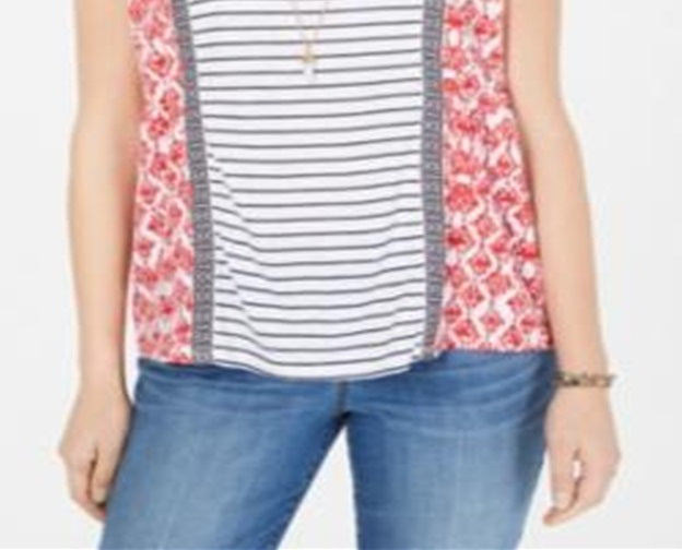 Style & Co Women's Printed Short Sleeve Top Red Size X-Large