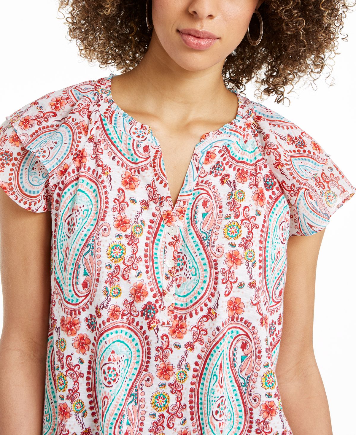 Ask a question about Style & Co Women's Printed Split Neck Top White Size Small