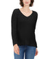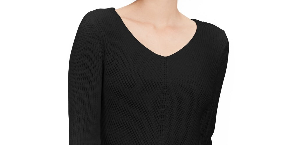 Style & Co Women's Ribbed V Neck Cotton Sweater Black Size Large