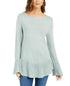 Style & Co Women's Ruffle Hem Knit Sweater Green Size Medium