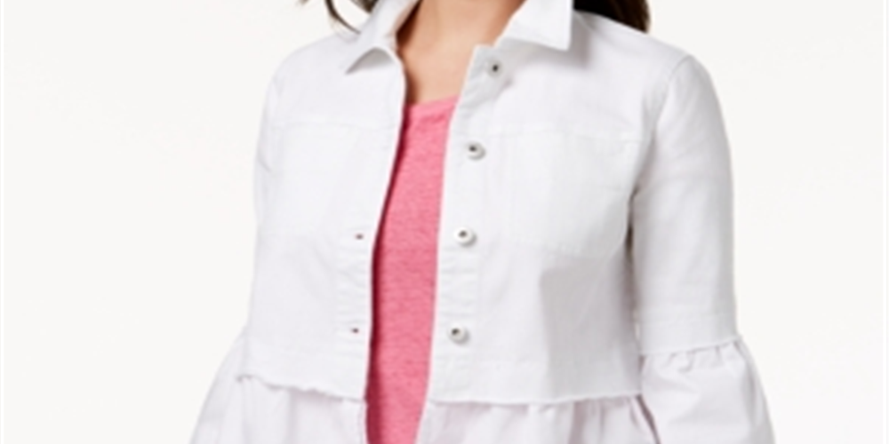 Style & Co Women's Ruffled Denim Jacket White Size XX-Large