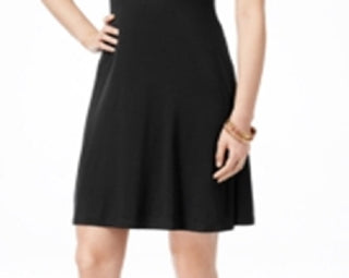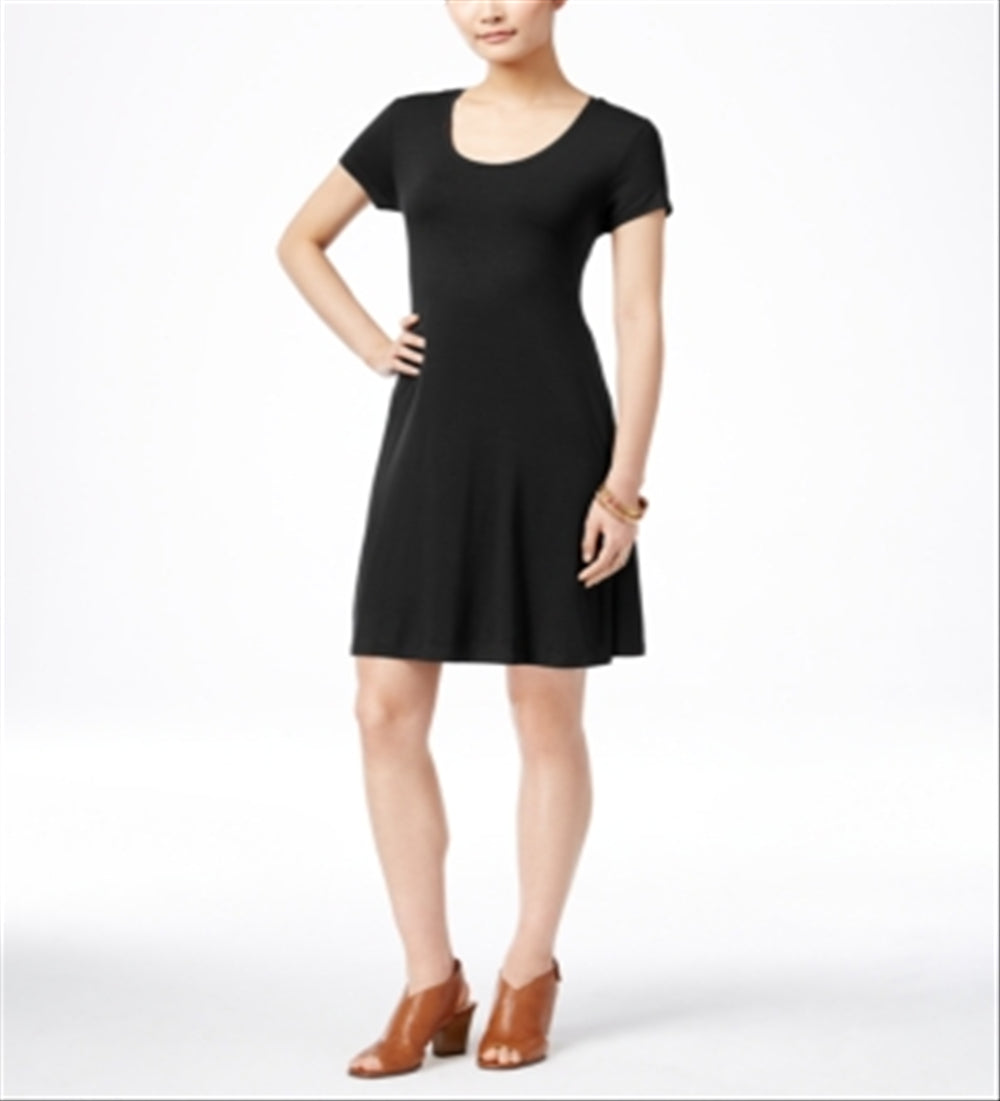 Style & Co Women's Short Sleeve a Line Dress Black Size Petite L