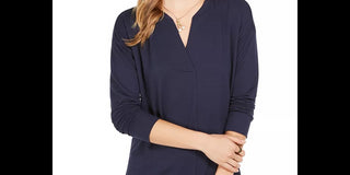 Style & Co Women's Split-Neck Top Black Size X-Small