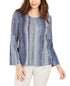 Style & Co Women's Striped Bell Sleeve Top Purple Size Small