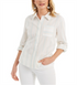 Style & Co Women's Striped Roll Tab Blouse Pink Size Petite Small
