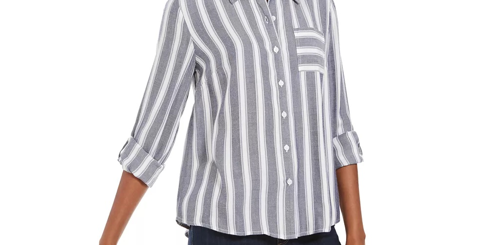 Style & Co Women's Striped Utility Shirt Grey Size X-Large