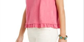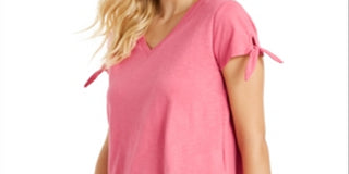 Style & Co Women's Tie-Cuff Ruffled Top Pink Size Petite