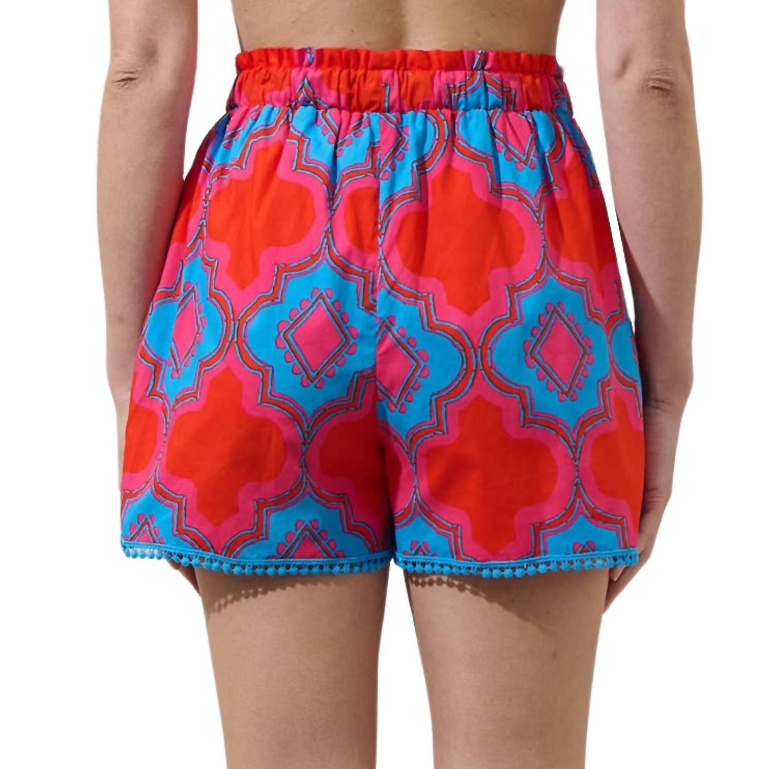 We know that the Devany Mix Media Melia High Waisted Shorts will always be your pick when styling. These short have an elastic band at the waist with mini ruffles, and a belt tie in the center front. The bottom trim has a pom pom design. Wear it with its matching top for a full look.