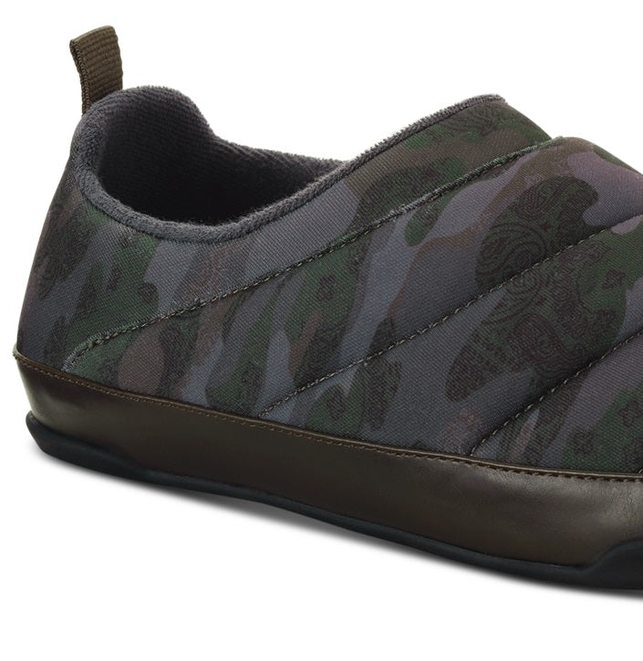 A quilted body lends the comfortable Derek slipper by Sun + Stone a more modern styling character.| Round-toe slip-on slipper| Heel pull; quilted upper| Padded collar| Polyester upper; cotton lining; rubber outsole| Spot clean| Imported