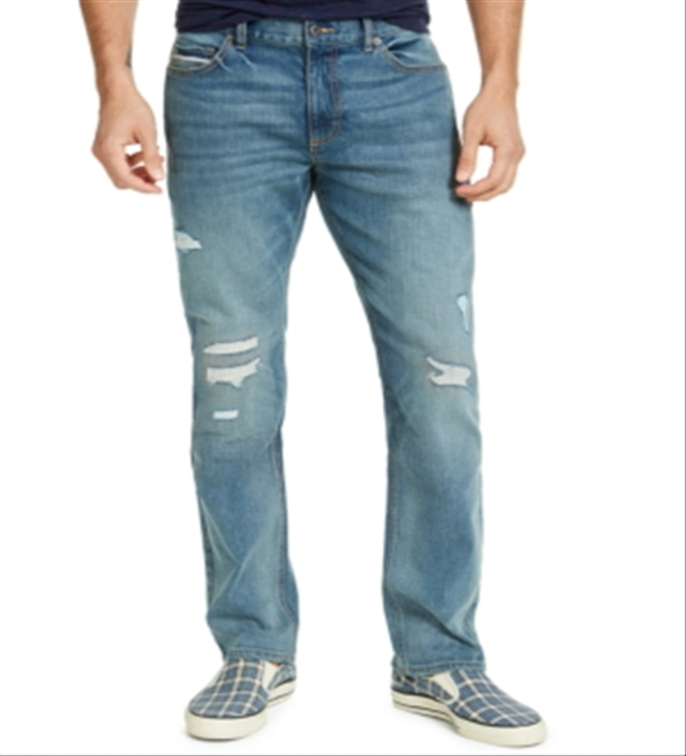 Imported|Five-pocket design|Sits below waist|Whiskering and distressed detail|Zip fly with button closure