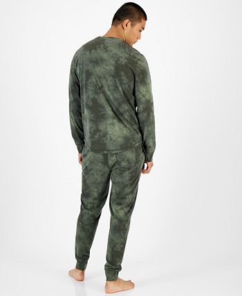 Sun + Stone Men's Tie Dyed Long Sleeve Pajama T-Shirt Green Size Large
