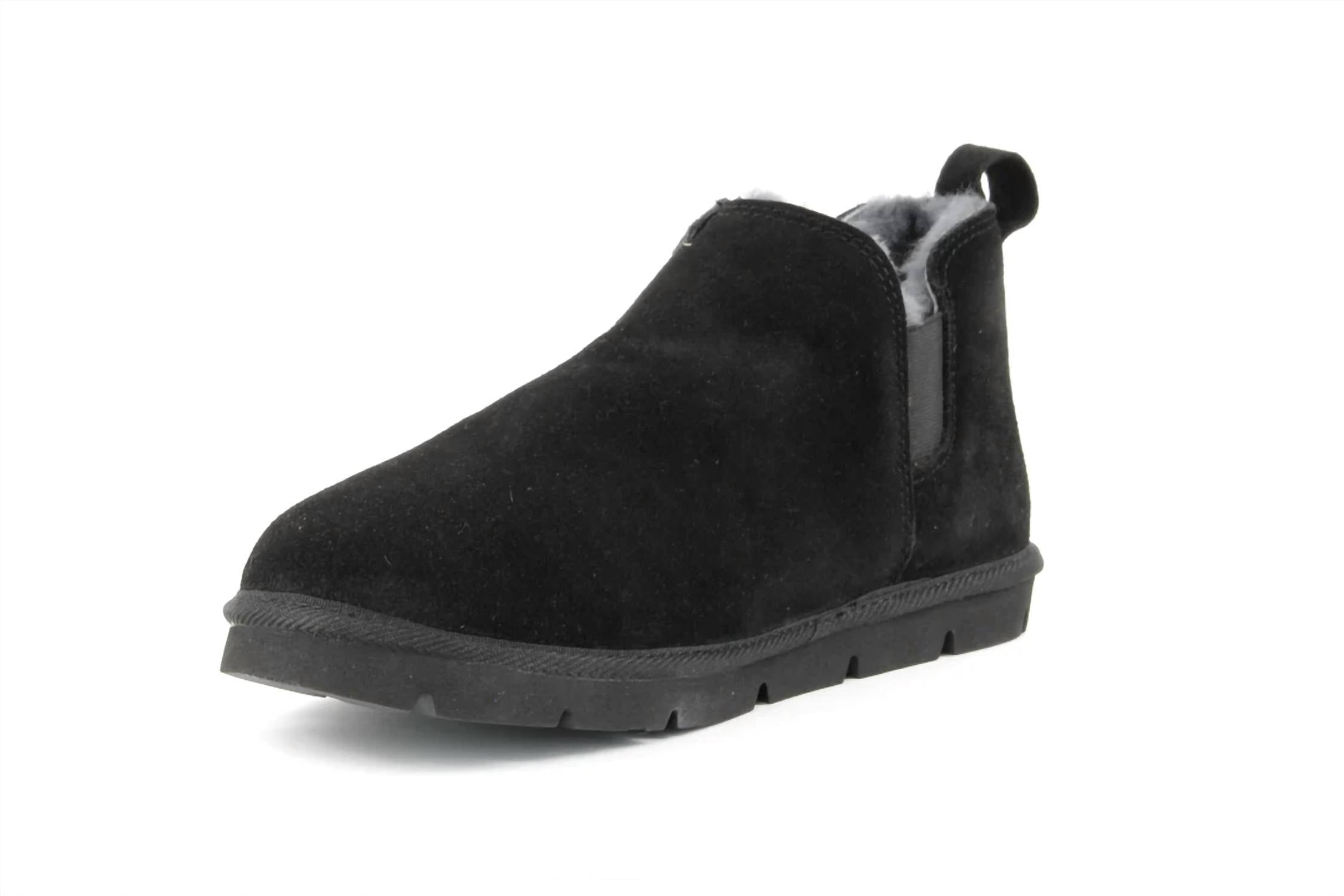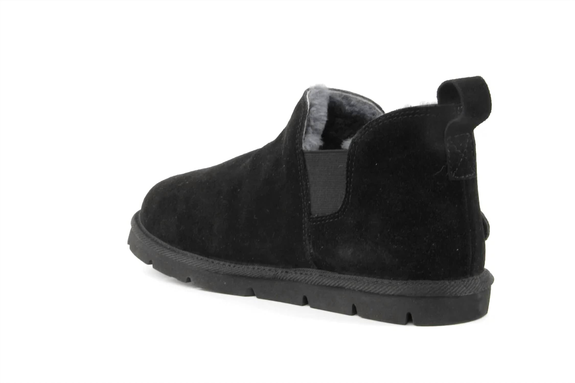 Say hello to the perfect, most versatile boot. The ankle height makes this style easily transition from day to night. Wear them with your favorite skinny jeans and tee for a more laid back look, or pair them with your favorite mini dress and jacket for a night out on the town. Experience the perfect blend of style and comfort. Crafted from 100% real suede leather. Feature a 4.5-inch shaft lined with genuine sheepskin fleece, ensuring warmth without synthetic materials. Design includes a round toe and a low platform heel, with an adjustable side strap for a custom fit. Durable Rubber-Lon EVA outsole with Hyper-Flex Groove design offers excellent grip and flexibility. Removable, washable insoles for lasting comfort.