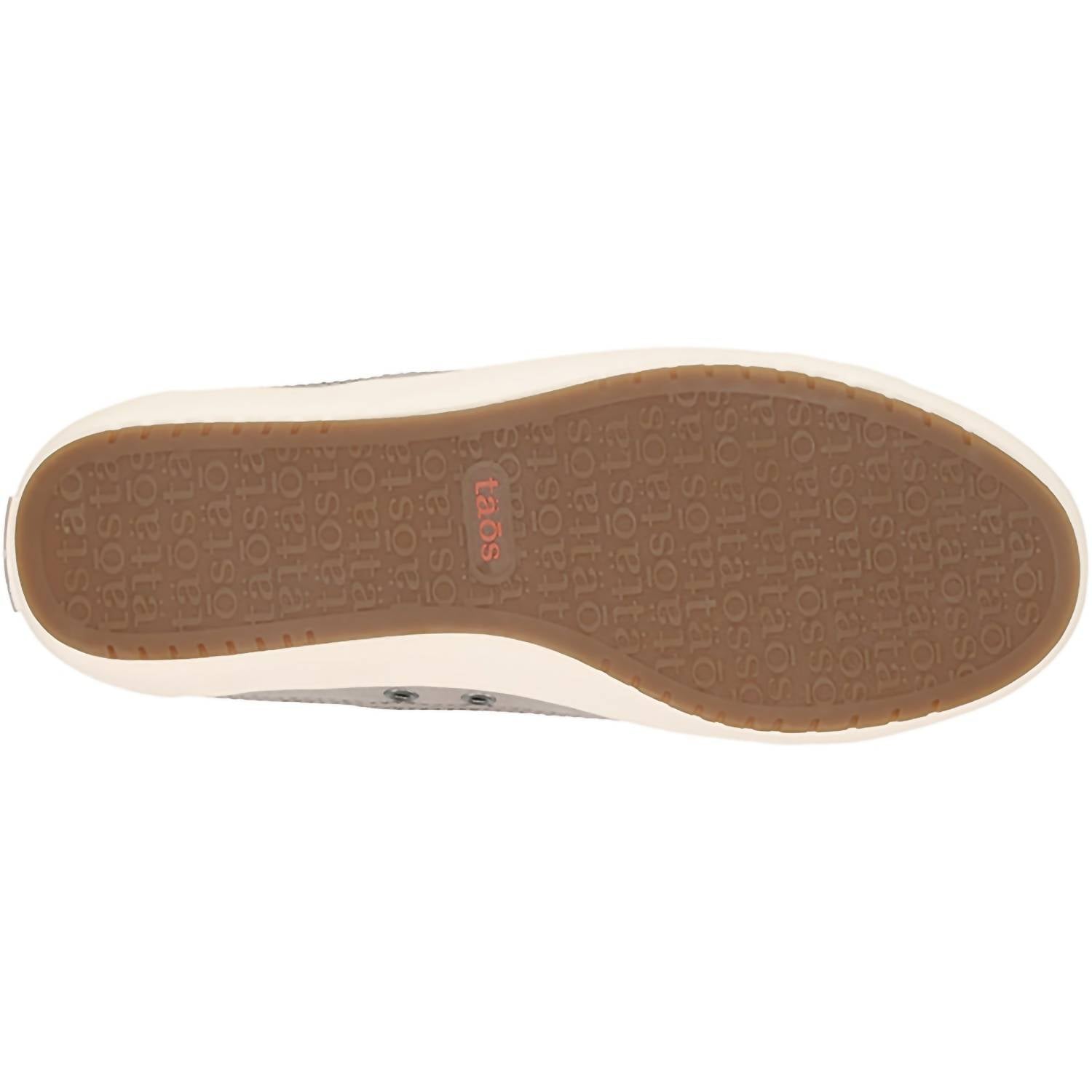 Elevate your sneaker collection with the Taos Women's Moc Star 2 Distressed Canvas Sneaker in a trendy grey hue. Crafted with vintage canvas uppers and featuring a durable, flexible rubber outsole, these sneakers are designed for both style and comfort. The premium polyurethane footbed, wrapped in canvas, provides exceptional arch and metatarsal support, complemented by forefoot cushioning for all-day wear. With a heel height of 3/4", these orthotic-friendly sneakers are perfect for travel and capturing the essence of 90s fashion.