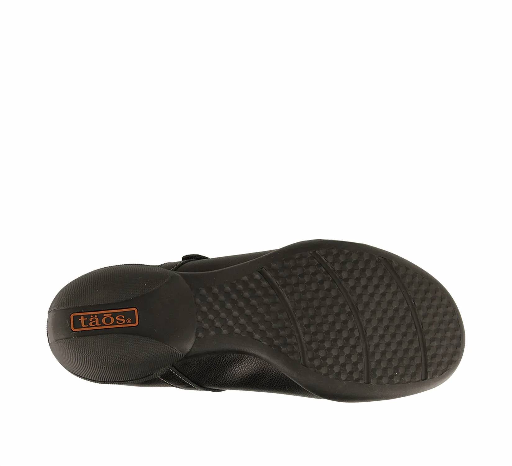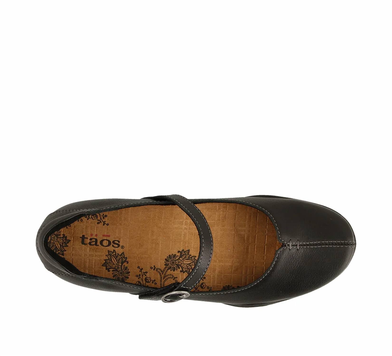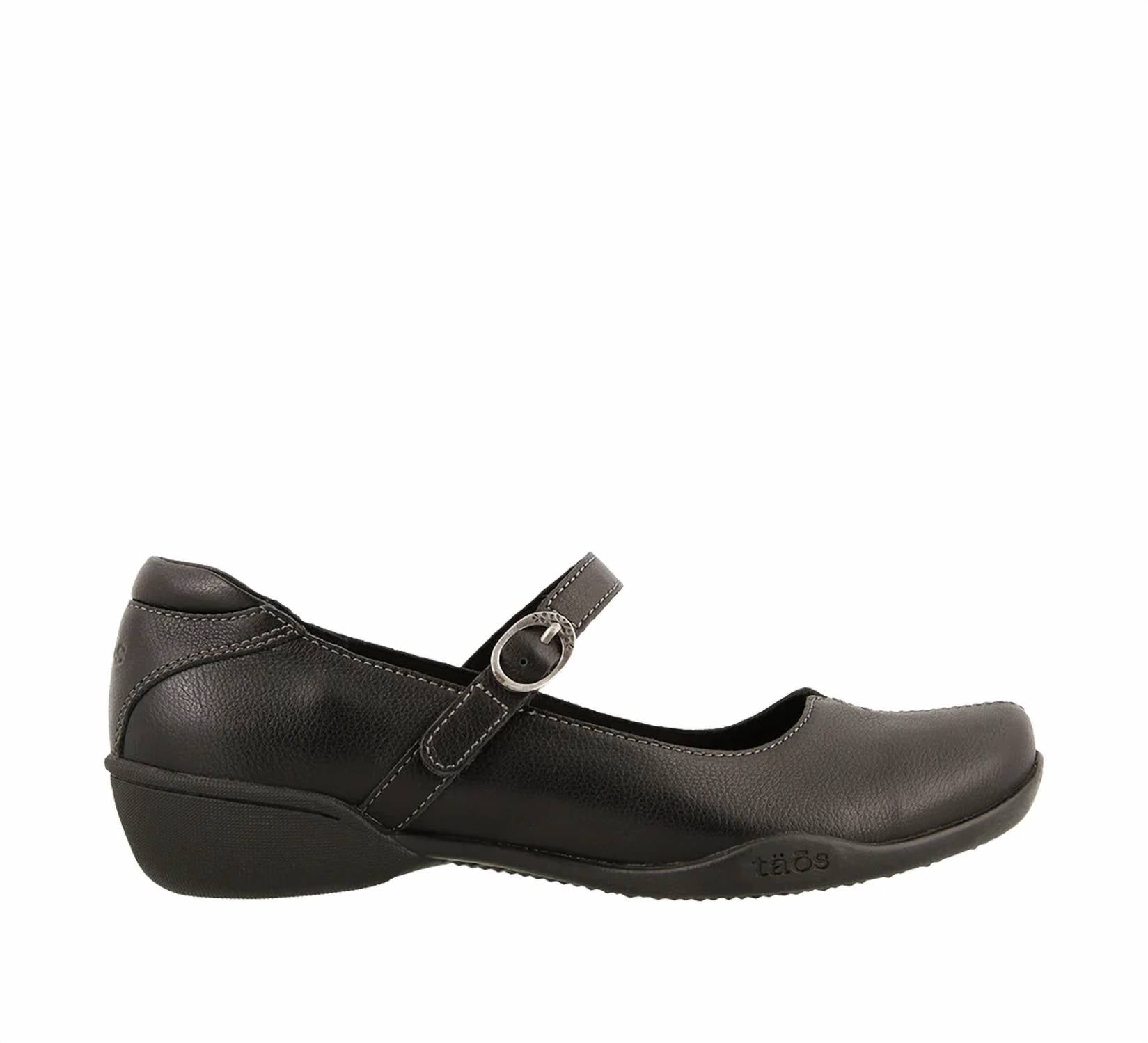Loafers so versatile you can wear them with just about anything. Discover the Women's Tadah Mary Jane Shoes by Taos, the perfect blend of style and comfort. These flats feature leather uppers in a sleek black finish, with an adjustable buckle strap for a secure fit and a classic round toe shape. They come equipped with a Curves & Pods® removable footbed and a SILVADUR Antimicrobial Shield for lasting freshness. The flexible and durable rubber outsole boasts a flat heel with a height of 1 ½”, ideal for all-day wear.