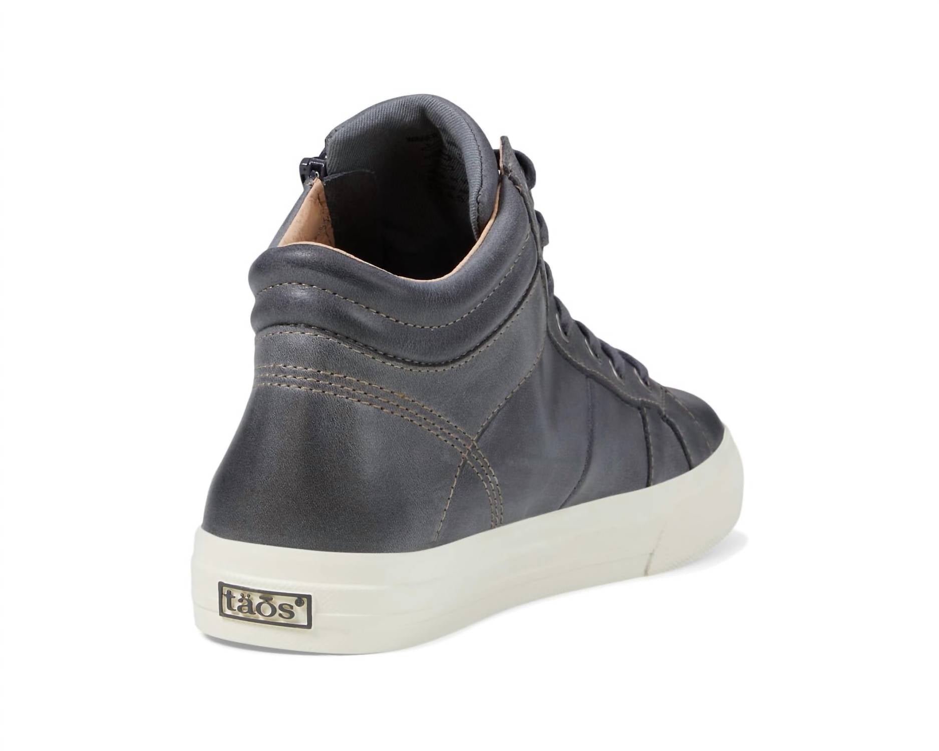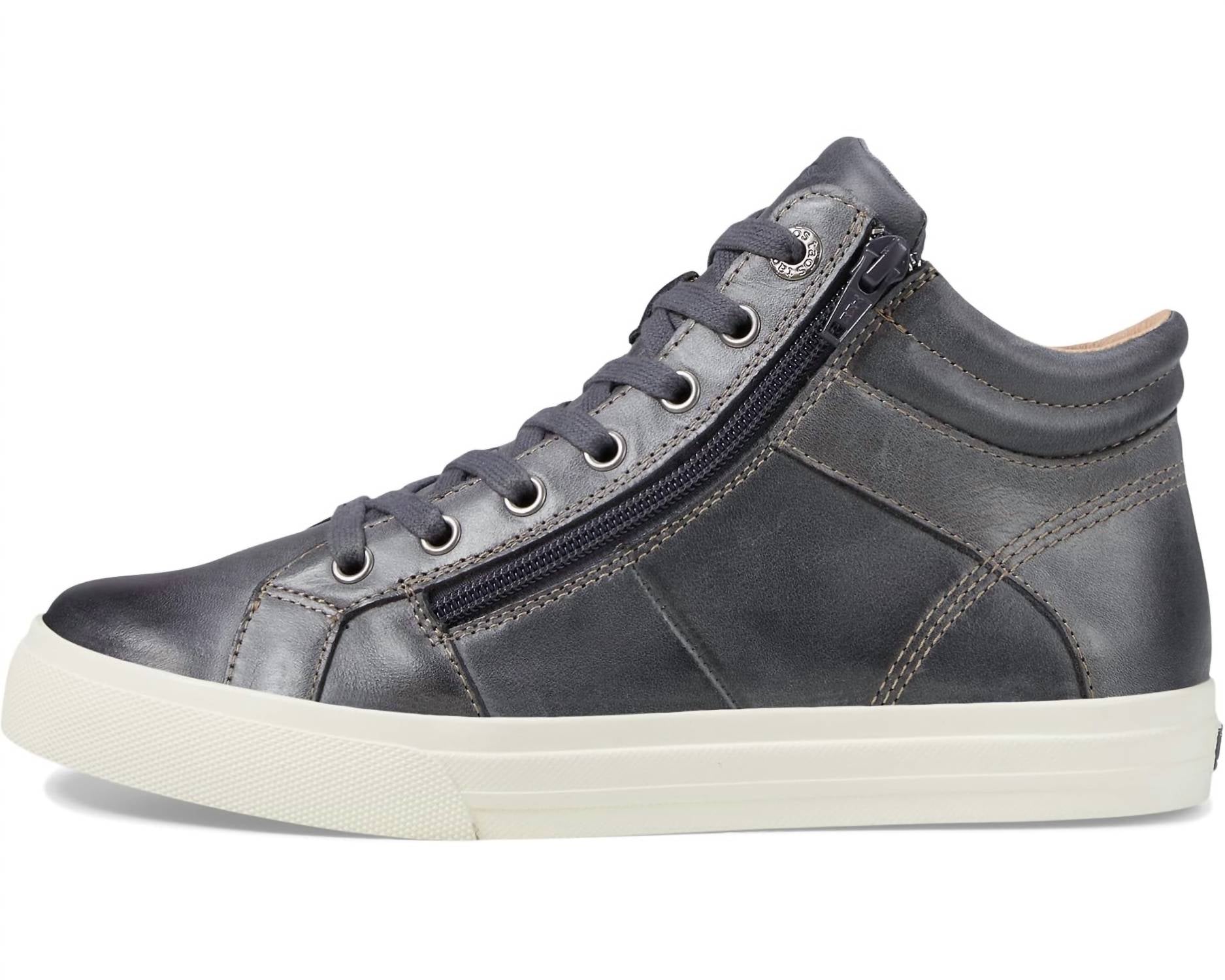 Get your daily steps in with these adorable sneakers. Embrace all-day comfort and style, crafted for both travel and streetwear. Women's high-top sneakers feature a supportive removable footbed and a convenient combination of lace-up adjustability with an outer zipper for easy wear. Boast a leather upper with breathable canvas and leather linings treated with SILVADUR for odor-free freshness. Molded ethylene vinyl acetate Curves and Pods footbed enhances superior arch and metatarsal support. Rubber traction outsole ensures durability, and the sneakers are finished with elegant stitching details.