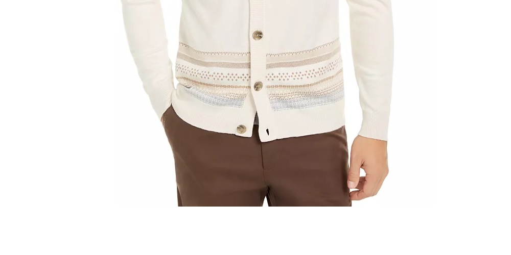 Tasso Elba Men's Geo-Stripe Intarsia-Knit Cardigan White Size Large