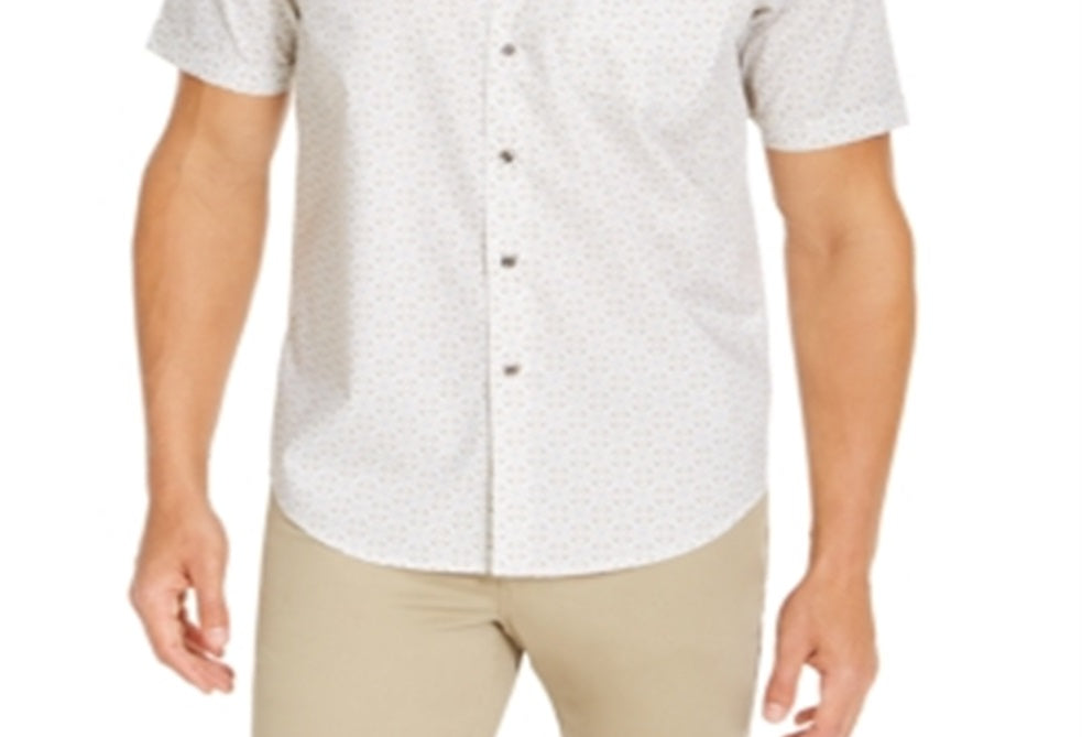 Display a subtle elegance in absolute comfort with the crisp medallion styling and soft stretch cotton finish of this cosmopolitan short sleeve button-up shirt by Tasso Elba.| Regular fit| Spread collar| Pocket at left chest| Stretch fabric for full range of movement|