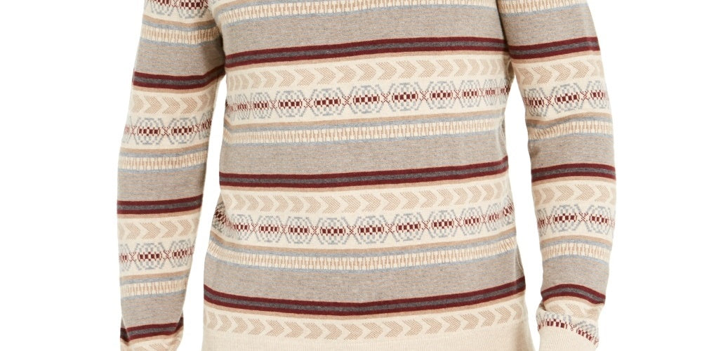 Tasso Elba Men's Striped Quarter Zip Sweater Beige Size Large