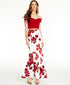 Approx. 62" long from center back neck to hem. Length varies 1/2" between sizes|Off-the-shoulder neckline; Bodycon silhouette|Back zipper closure on top and skirt|Two-piece design: crop top & ruffled floral-print skirt|IMPORTANT NOTE: This item arrives with a return tag attached and instructions for removal. Once the tag is removed from the dress, this item cannot be returned.