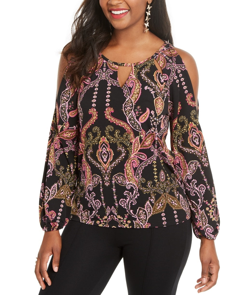 Ask a question about Thalia Sodi Women's Printed Cold-Shoulder Top Black Size Small