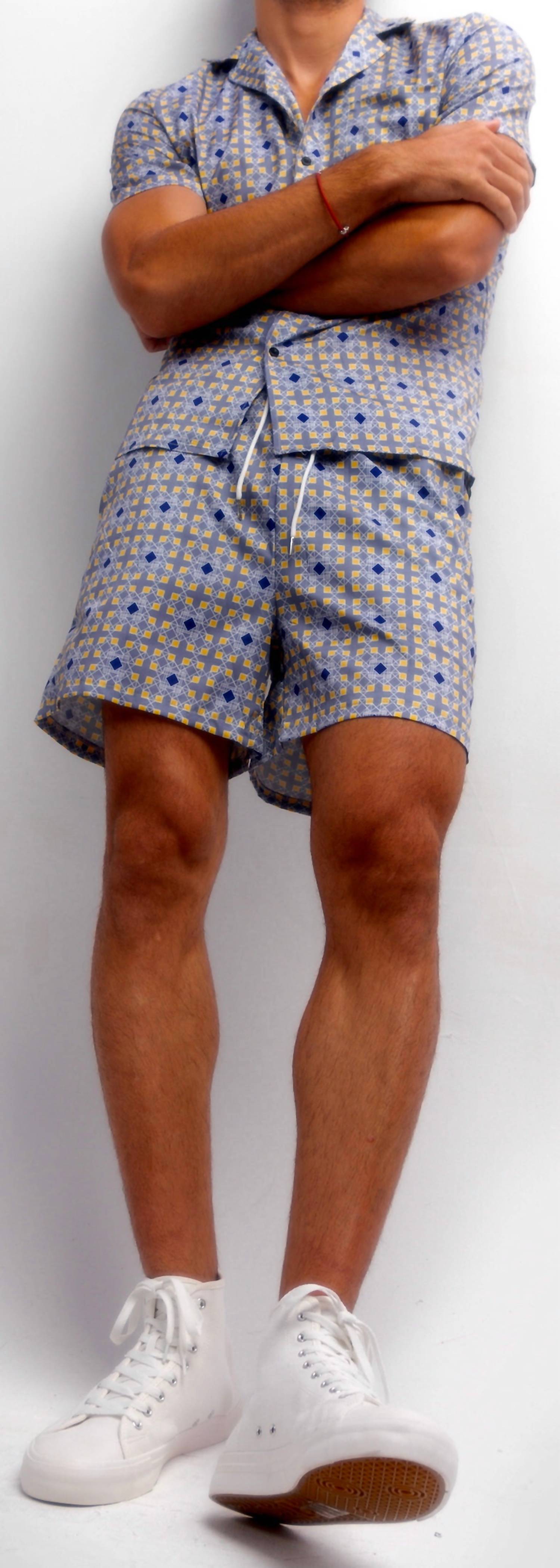 Experience the Active Self Fun Set by The Athletic Side Of Us, reimagining men's fashion with modern flair. This loungewear set features a short-sleeve button-up shirt and matching above-the-knee shorts. Crafted from recycled plastic bottles, this eco-conscious set boasts comfort and sustainability. The shorts include an adjustable drawstring waistband for a personalized fit, perfect for the fashion and environmentally conscious individual. Available in Black & White.