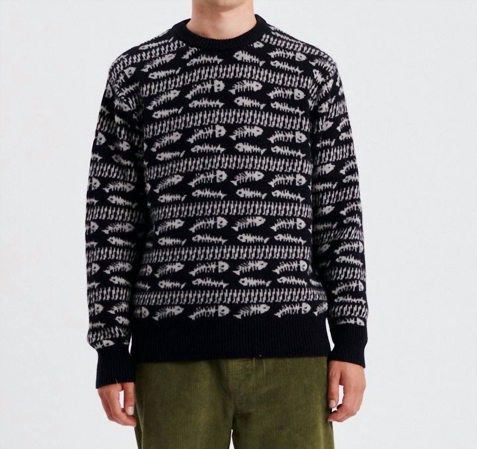 Embrace the 90s vibe with the Boneyard Crew by The Critical Slide Society, a standout crewneck in classic black. This long sleeve piece is crafted from 100% cotton jacquard knit, offering a slightly oversized fit with structured ribbing at the cuffs and neck. Closure: Pull on. Perfect for those seeking an easy fit and timeless feel.