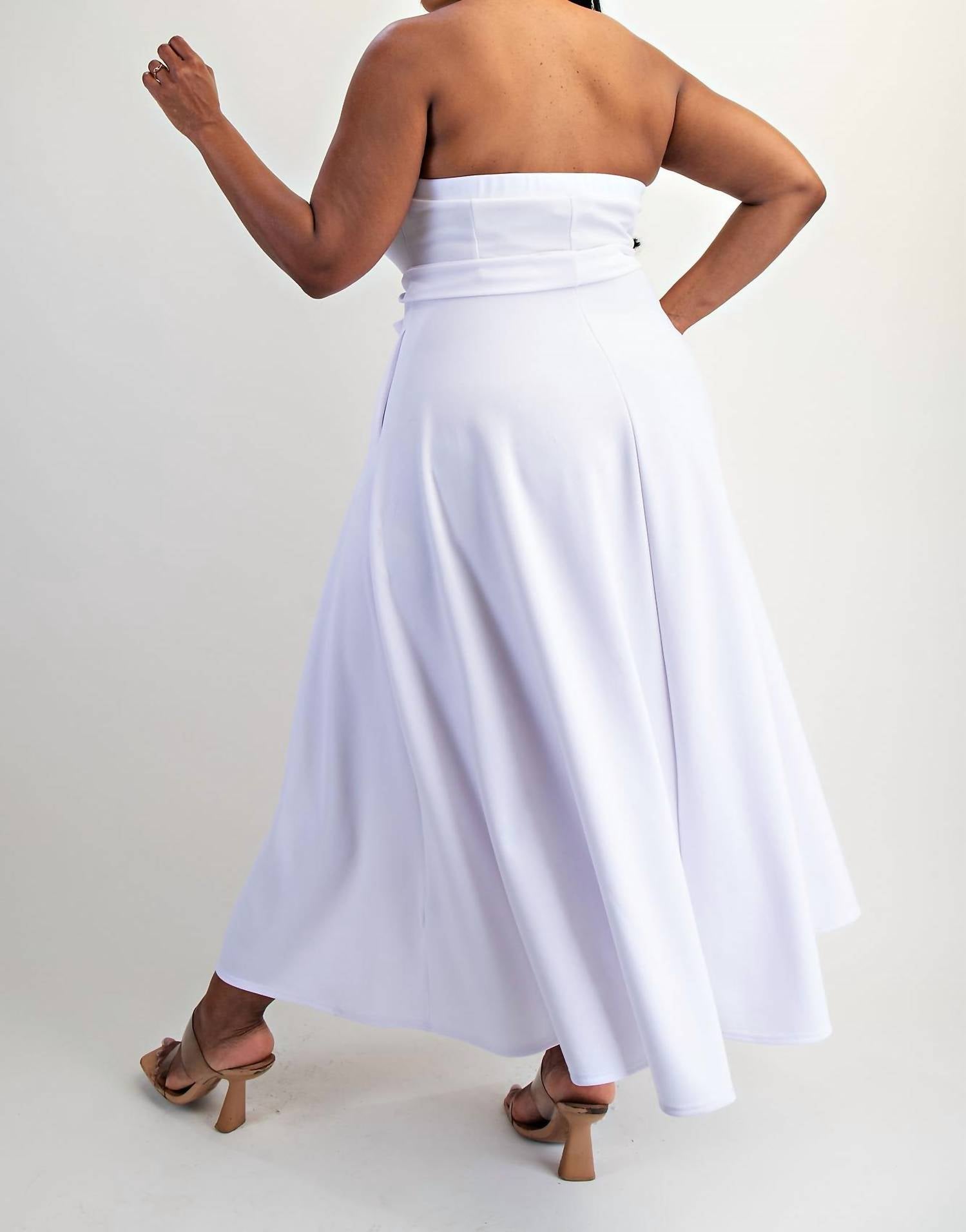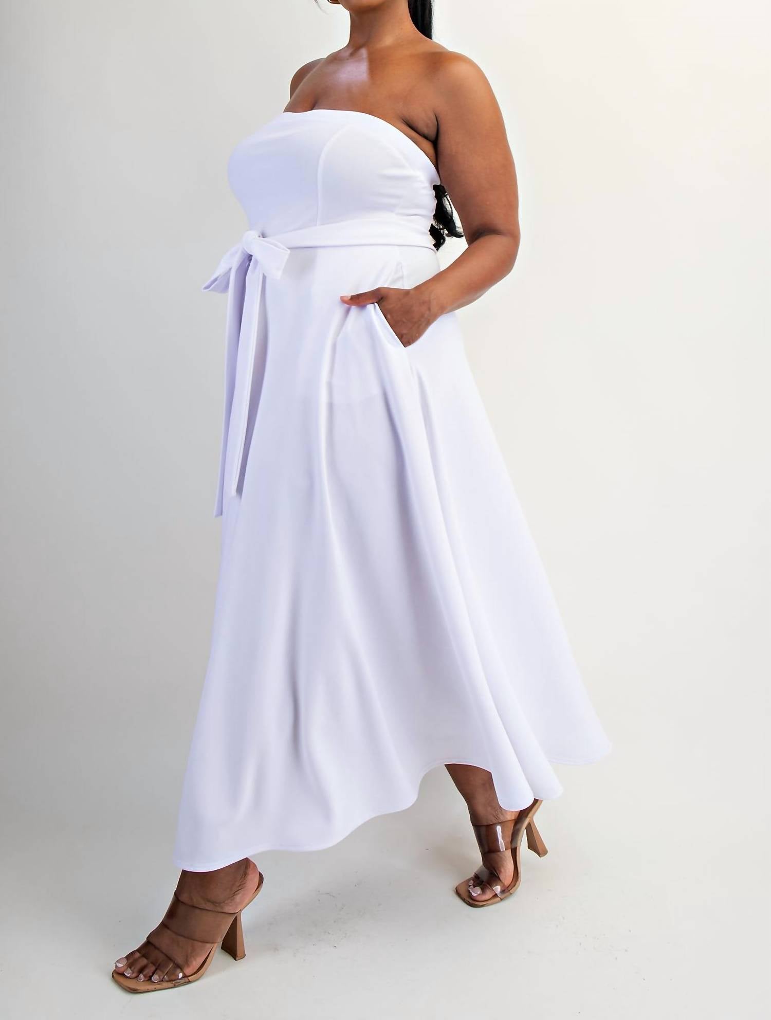 A strapless dress so versatile you can dress it up with heels or wedges, or give off a more casual vibe with flats. Discover the Plus Size Knit Tube Maxi Dress with Self Belt by The Curve LA, a stunning addition to your wardrobe in vibrant red. This strapless A-line dress features a flattering squareneck with a self-tie sash, accentuated by practical front pockets. Made in the United States, this solid-patterned piece offers a chic pull-on closure for seamless wear. Easy to care for, simply machine wash to maintain its fresh look, perfect for springtime dinner parties or special occasions.