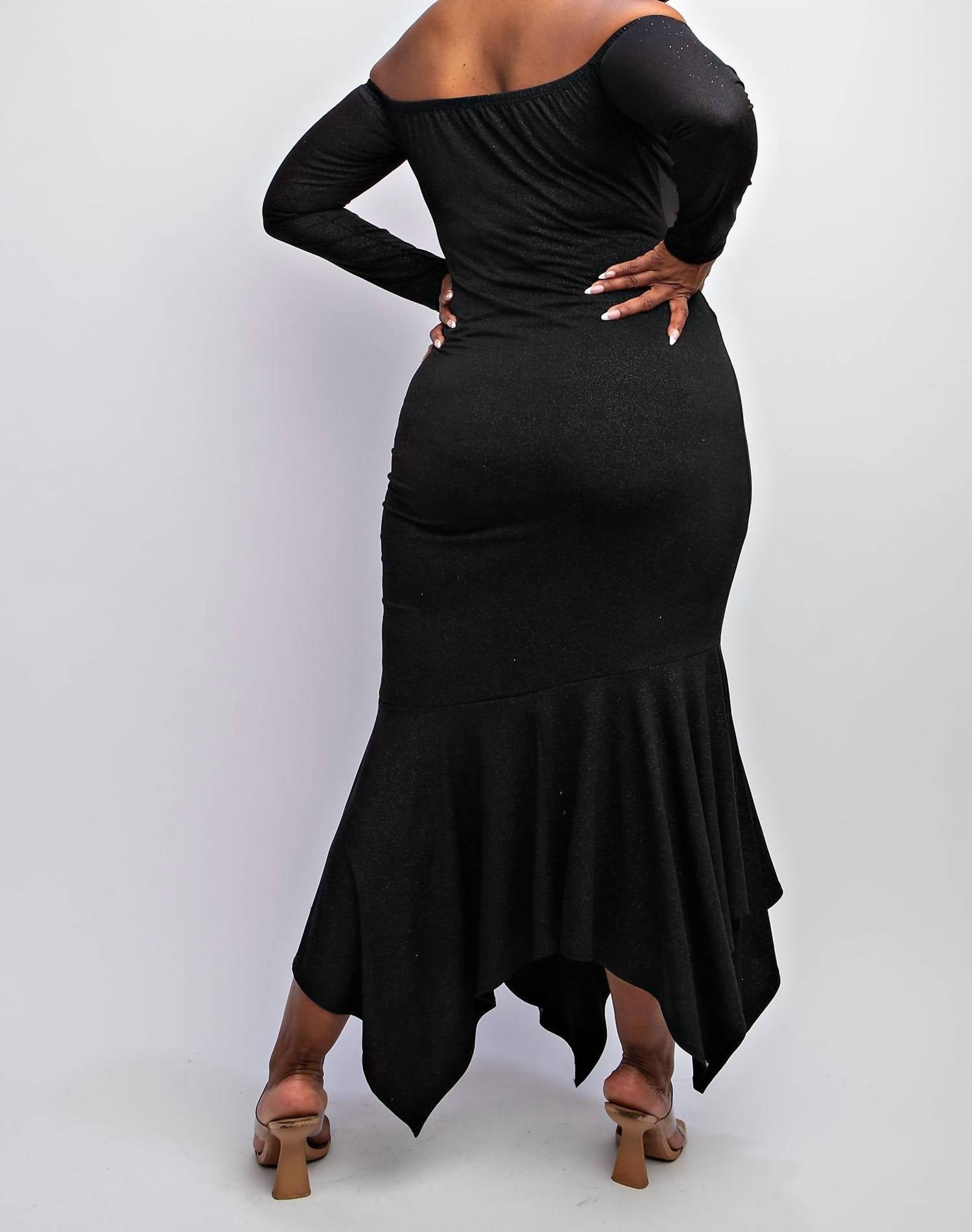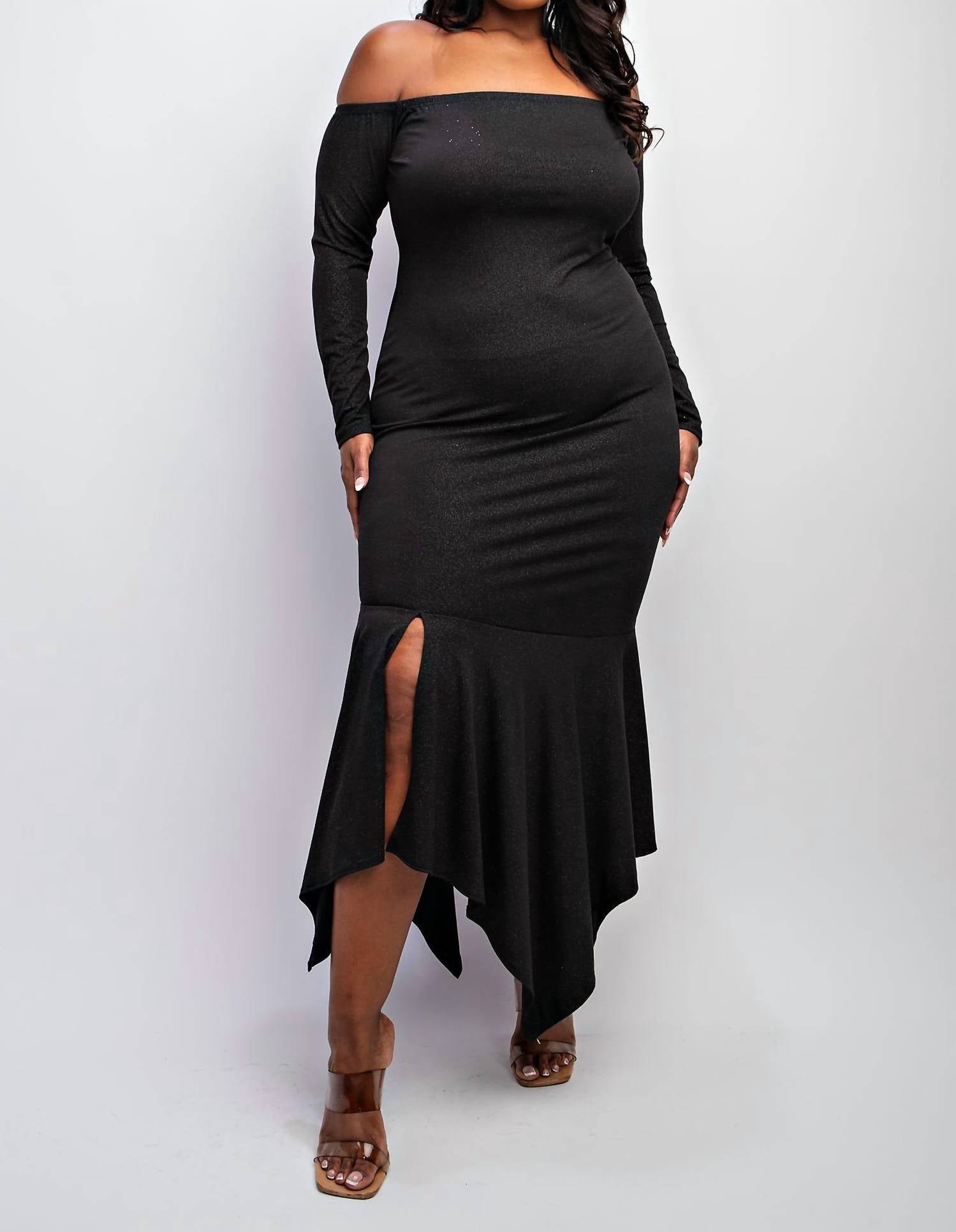 A maxi dress that is just as cute as it is comfortable. Introducing The Curve LA Plus Size Off Shoulder Metallic Knit Dress, a standout piece in a vibrant magenta hue perfect for holiday celebrations. This maxi dress showcases a glamorous allover glitter pattern, long sleeves, and an off-the-shoulder neckline that enhances its elegant appeal. Designed with an asymmetric hem featuring a side slit and a bodycon silhouette, this dress effortlessly combines sophistication and allure. Made in the United States, it offers a pull-on closure and is machine washable for easy care.
