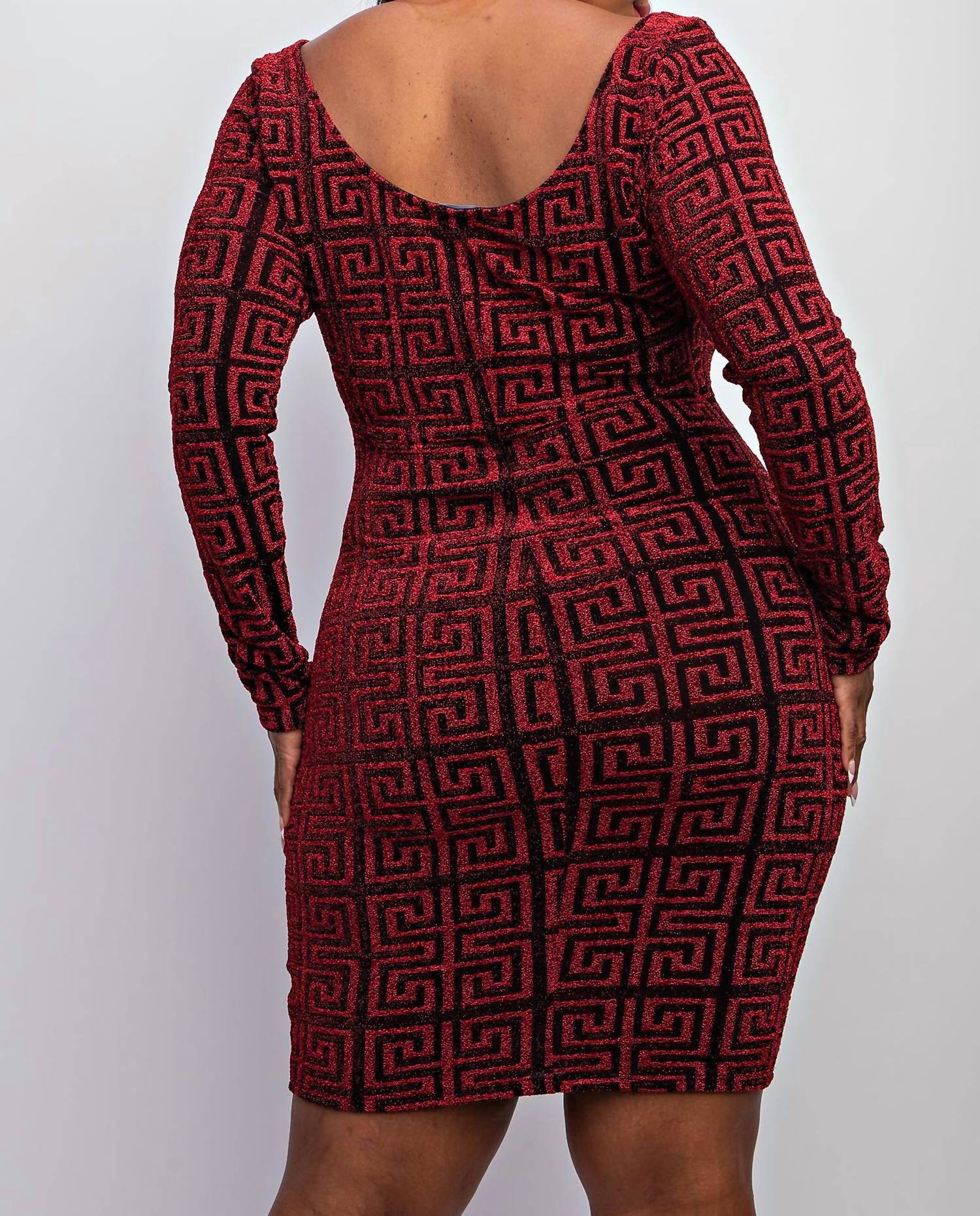 The kind of easy and flattering dress you'll be reaching for all season long. The Curve LA presents the Plus Size Scoop Neck Short Dress, a stunning choice for your next dinner party. This eye-catching mini dress in vibrant fuchsia and black features long sleeves and a textured Greek key pattern, embracing a bodycon silhouette that hugs your curves. Made in the United States, this dress offers a convenient pull-on closure. Perfect for spring outings or Valentine's Day celebrations.