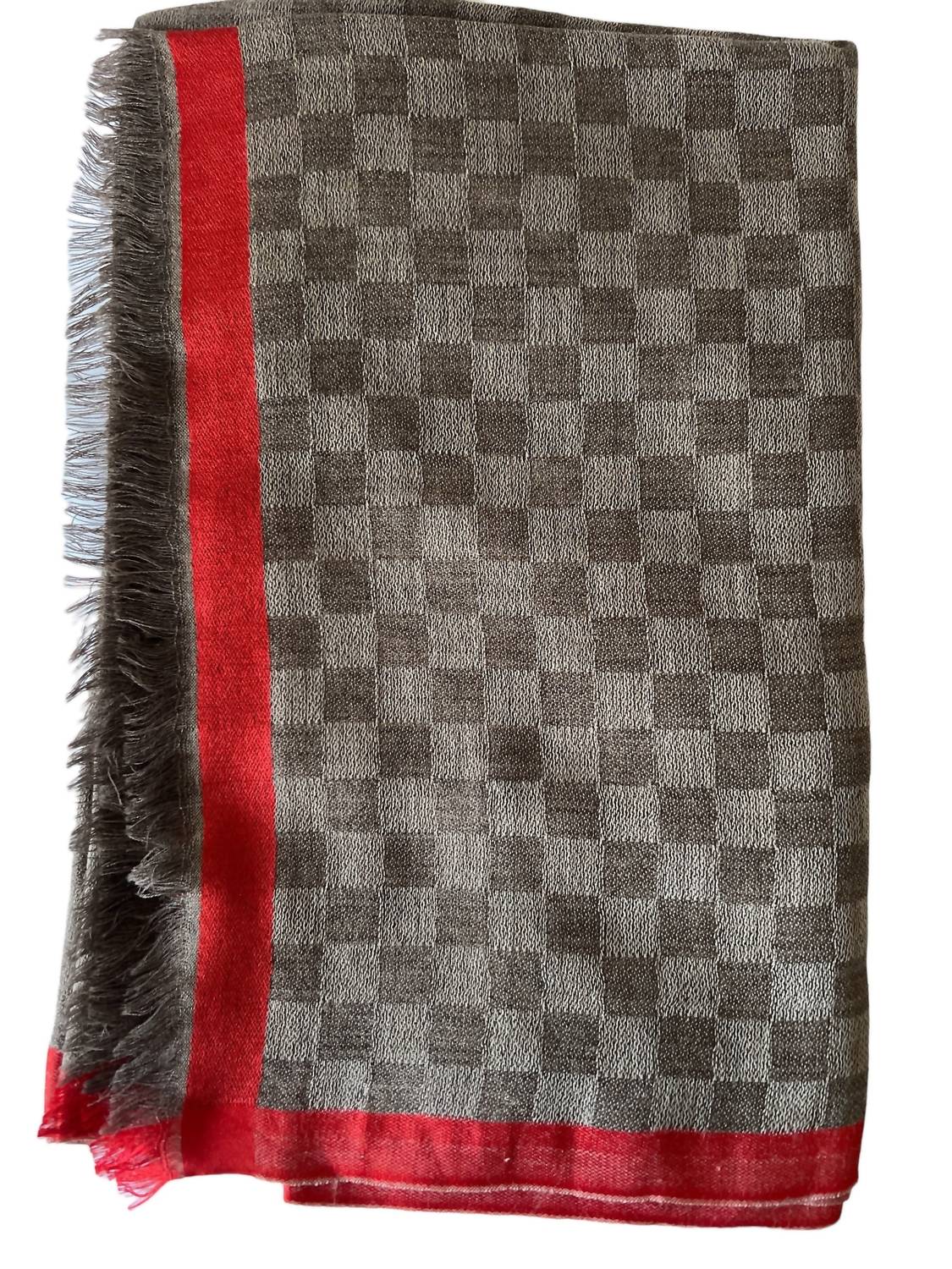 The perfect accessory to complete any look. Discover understated elegance with the Women's Wool Blend Scarf by THE GRAY CRAB, featuring a sophisticated brown check pattern accentuated by a vibrant red border. Crafted from a luxurious silk-wool blend, this scarf measures 70*180, making it perfect for versatile styling. Material: Wool Blend. Ideal for adding a touch of class to your ensemble.