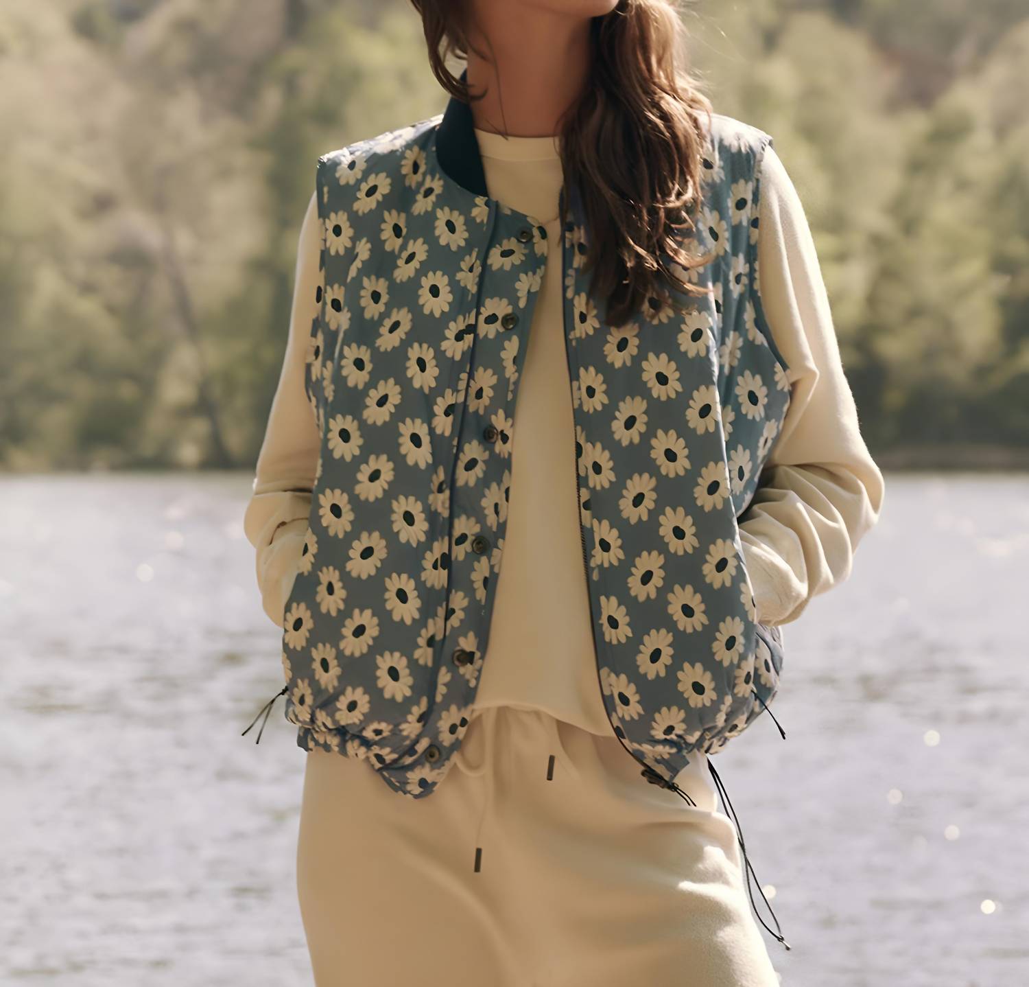 A vest so versatile you can mix and match it with almost any outfit and it will feel brand new every time. Meet the Reversible Down Vest by THE GREAT., an essential for outdoor enthusiasts with a love for adventure. This sleeveless vest is crafted from 100% Nylon and filled with responsibly sourced down, offering both warmth and lightweight comfort. Its versatile design features a boxy, swingy fit with adjustable bungee cords at the hem and functional pockets, making it perfect for layering. Closure: Snap closure. Care: Machine wash and tumble dry.