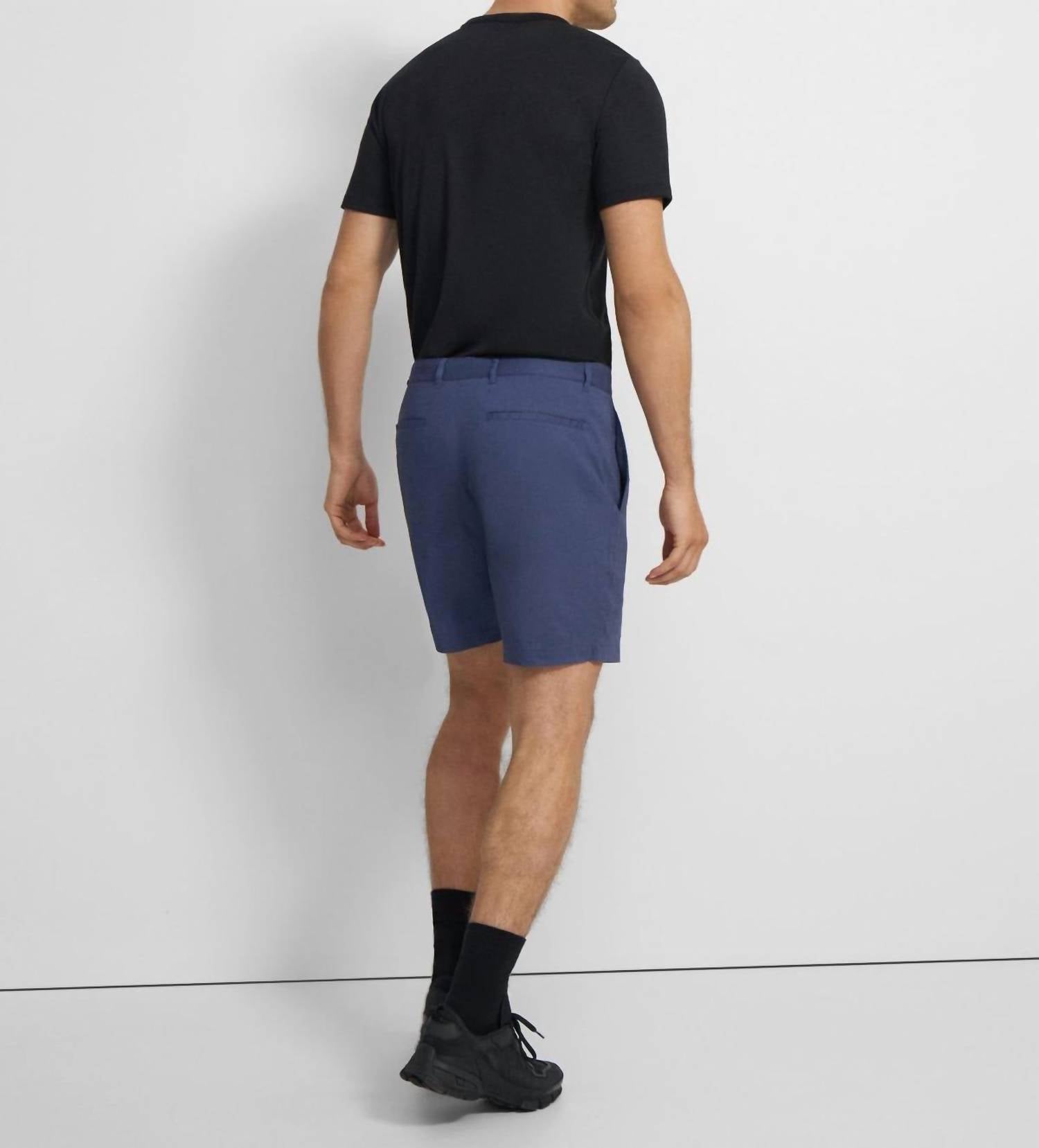 Comfort meets tailored style. Mid-rise, above-the-knee shorts. Feature a relaxed seat and slim, tapered leg, enhanced by side slip pockets and back welt pockets. Crafted from a blend of 62% Linen, 36% Viscose, and 2% Elastane. Ensures easy movement with its lightweight, stretchy fabric. Hook-and-zip closure. Dry clean only, preserving the shorts' refined look.