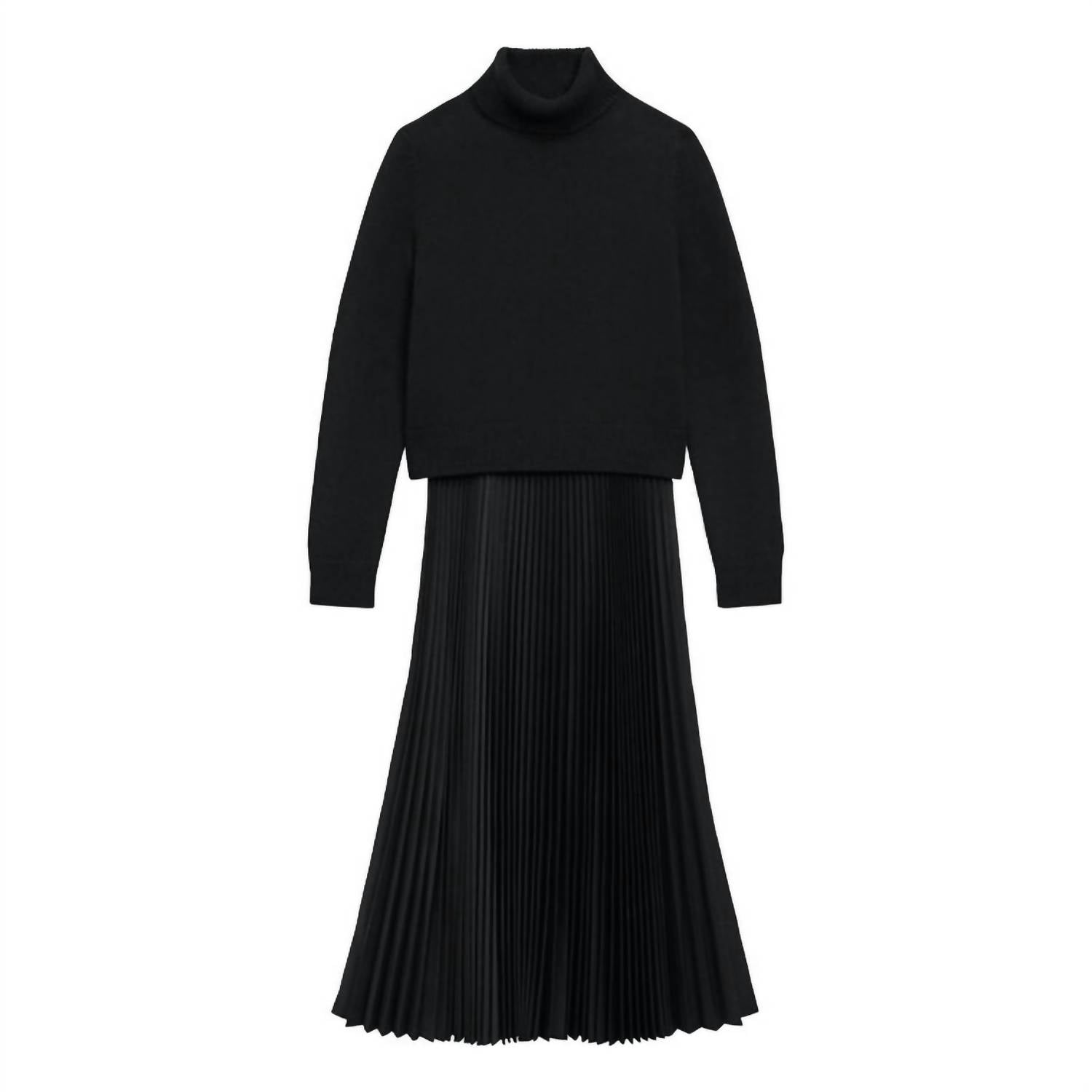 The perfect length dress does exist. This dress features a turtleneck shell crafted from a Pima cotton knit and long sleeves, paired with a pleated midi skirt. Bodice - 97% Cotton, 3% Recycled Nylon; Skirt - 53% Recycled Polyester, 43% Wool, 4% Elastane; Lining - 100% Recycled Polyester. Origin: China. Pull on. : Dry clean only.