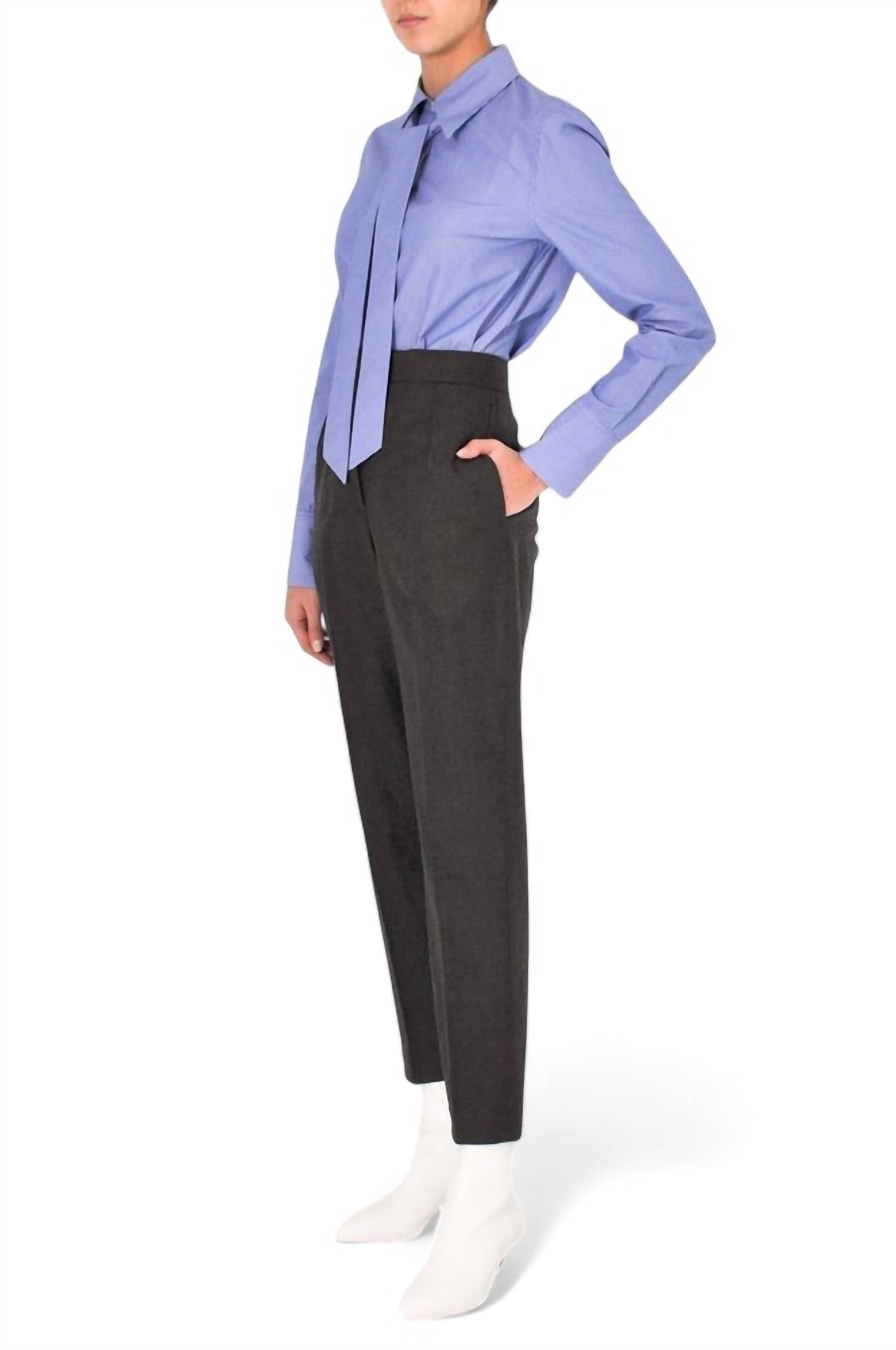 This button down shirt is comfortable yet polished. This shirt features a collar and tuxedo tie, along with a button-down front and long sleeves. It has a curved hem and is made from 100% cotton. Machine wash cold. Runs small.