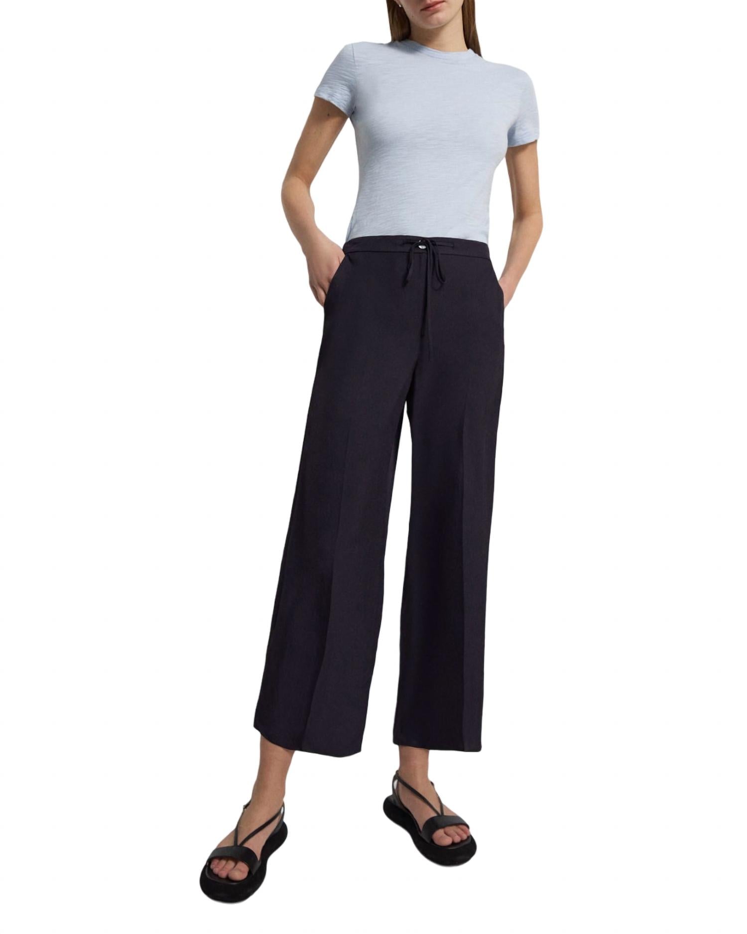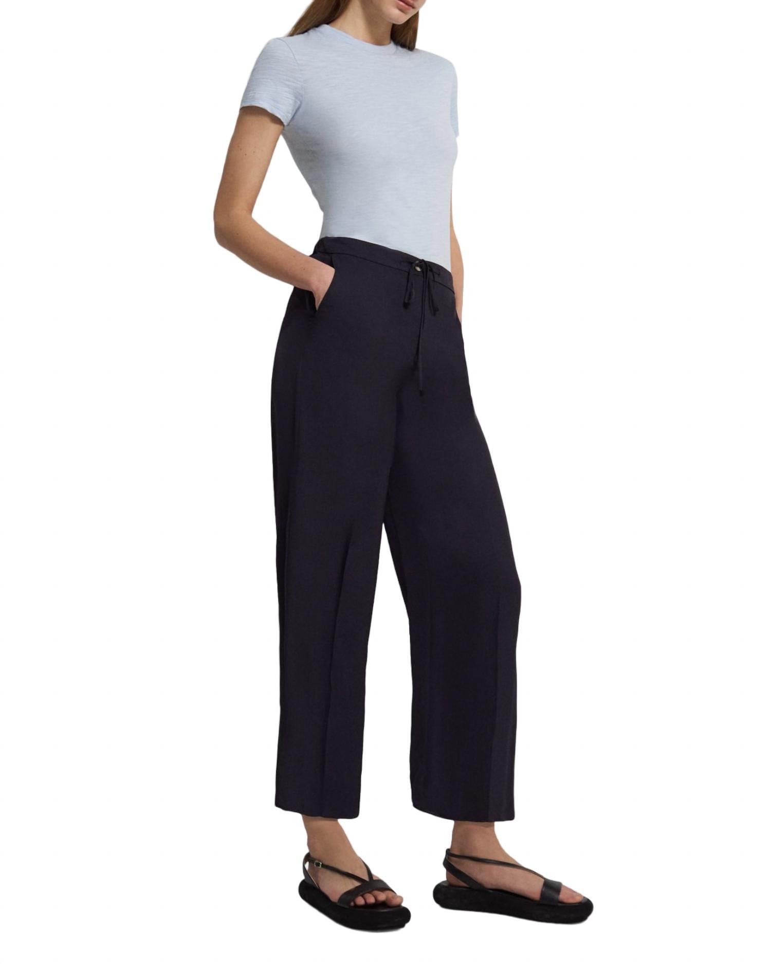 Enhance your wardrobe with this trendy cropped number, designed to blend style and practicality. The comfortable fit allows for easy all-day wear. The perfect length to pair with your favorite mules. Designed with a crisp wide-leg cut. Cut from Japanese twill fabric with a washed look and soft drape, it’s detailed with a button-and-zip closure and drawstring waist. Mid rise, wide leg. Cropped length. True to size. Model is 5’11” and wearing a US size 2. Composition: 100% Triacetate. Machine wash cold.