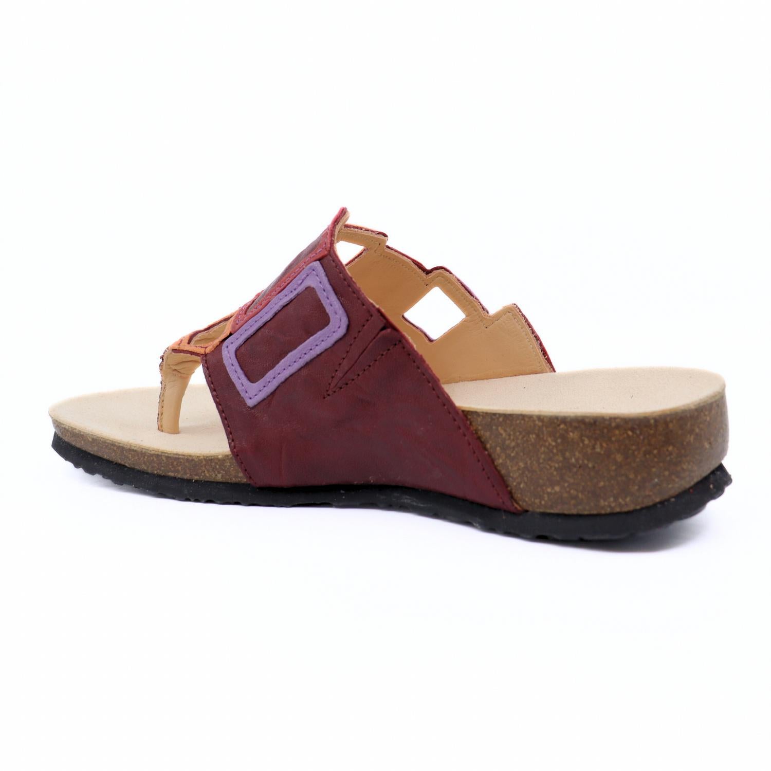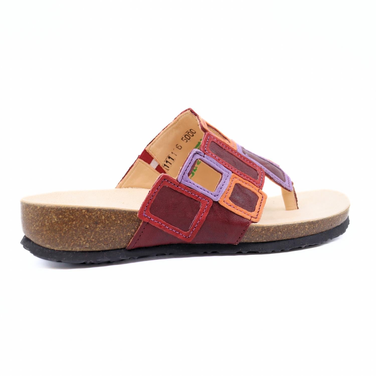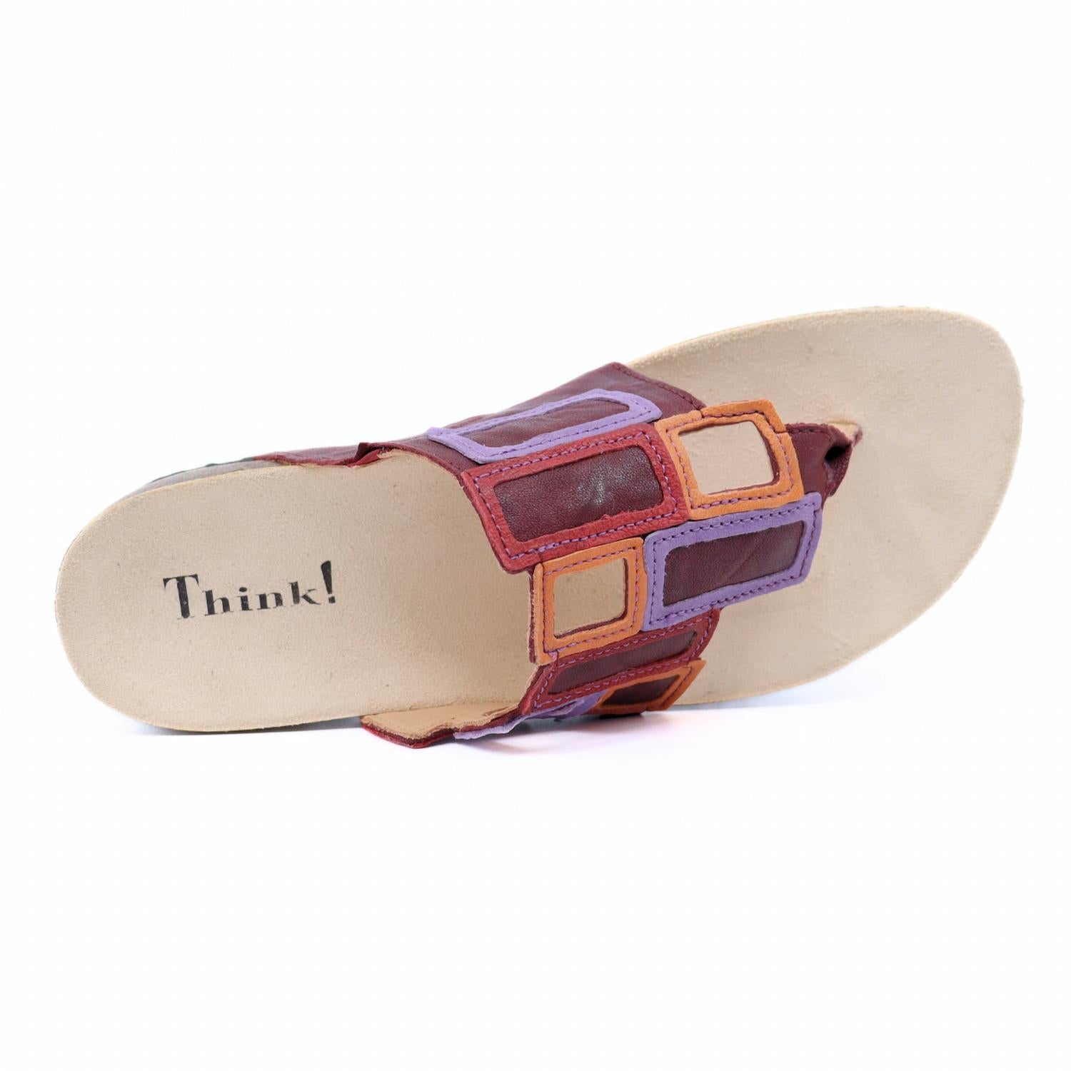 Step into retro-cool comfort with the T-bar Sandals by Think!, where color and creativity unite in bold style. Crafted from leather, these sandals feature a striking patchwork of geometric cutouts in vibrant red and dark red hues, perfectly embodying 90s fashion. With a comfortable contoured footbed and easy slip-on style, they boast a 1.18-inch wedge heel and a round toe shape, making them ideal for music festivals or casual outings. Elevate your summer wardrobe with these playful sandals and embrace your love for funky fashion.