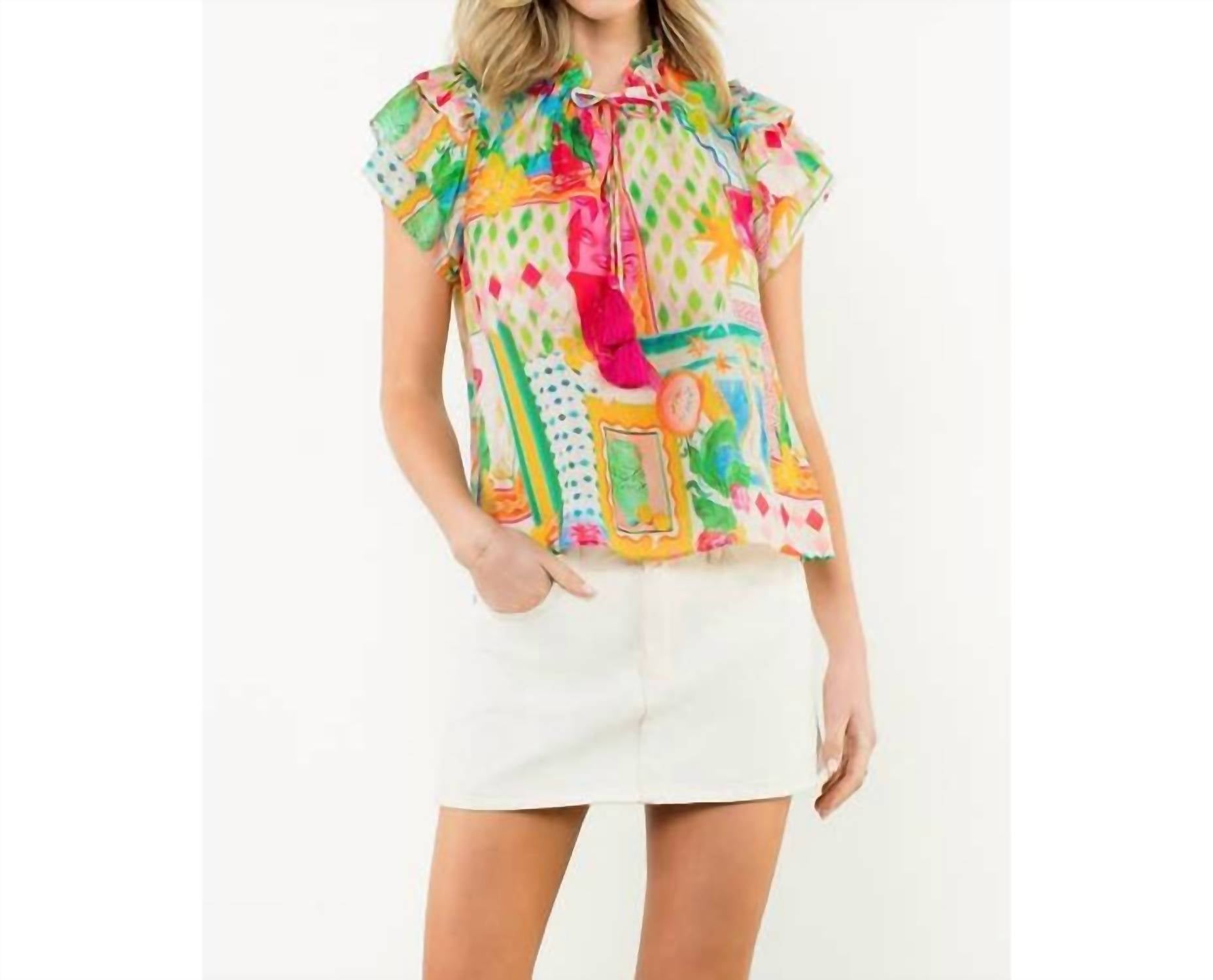 A timeless blouse that will never go out of style. Introducing the Flutter Sleeve Floral Top by THML, a summer essential in a charming pink multi-pattern. This blouse features short flutter sleeves and a stylish collar, with a body length of 23.5 inches. Crafted from a woven blend of 70% viscose and 30% nylon, it ensures comfort with a pull-on closure. Made in China, it's a vibrant addition to any wardrobe perfect for warm, sunny days.