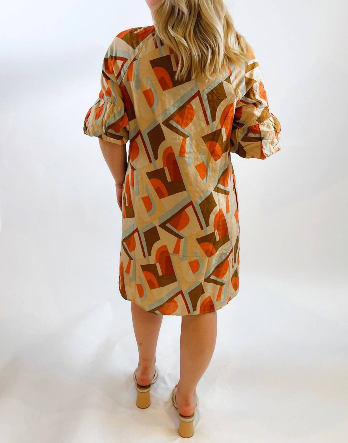 Meet the Lucca Leather Trim Mini Dress by THML, a must-have transitional piece with a vintage vibe. The dress features elbow-length sleeves and a stylish V-neck, complemented by a patterned design in rich fall colors. It's a lightweight A-line silhouette with practical pockets and a trendy faux leather trim. Slip into this effortless pull-on dress for Thanksgiving or homecoming occasions.